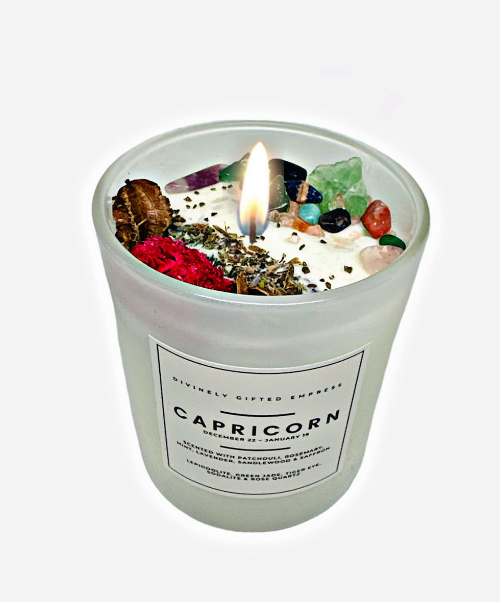 At Divinely Gifted Empress; all our candles are hand poured with LOVE using only high quality 100% Soy wax which means each candle will burn slower so your candle is going to burn a lot longer. Our candle Wicks are coated in a special blend of priming wax to enhance rigidity during the process of wax pouring and burning time to promote an even burn. Our wicks have been checked by a quality assurance team to ensure high quality standards. Each candle is infused with crystals, herbs and scents specifically created to each intentional candle.
